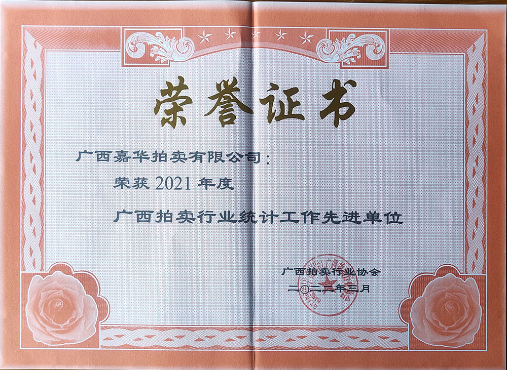 2022年度廣西拍賣行業統計工作先進單位 -